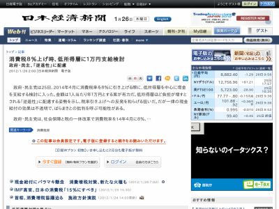 政府・民主党は25日、2014年4月に消費税率を8%に引き上げる際に、低所得層を中心に現金を支給する検討に入った。