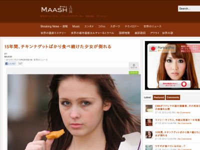 15年間、チキンナゲットばかり食べ続けた少女が倒れる