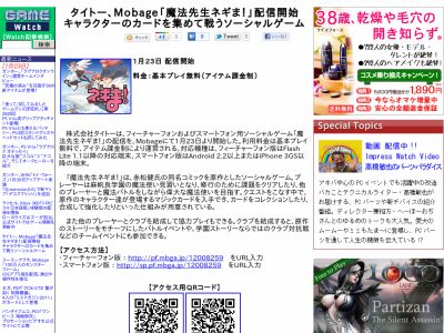 「魔法先生ネギま!」の配信を、Mobageにて1月23日より開始した。