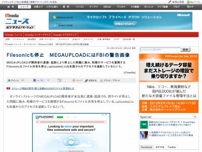 MEGAUPLOADが関係者の逮捕・起訴により停止した問題に絡み、同様のサービスを展開する