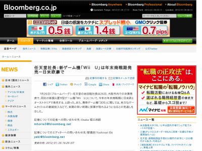 で、同社の新据え置き型ゲーム機「Wii U」について、今年の年末商戦期に日米欧