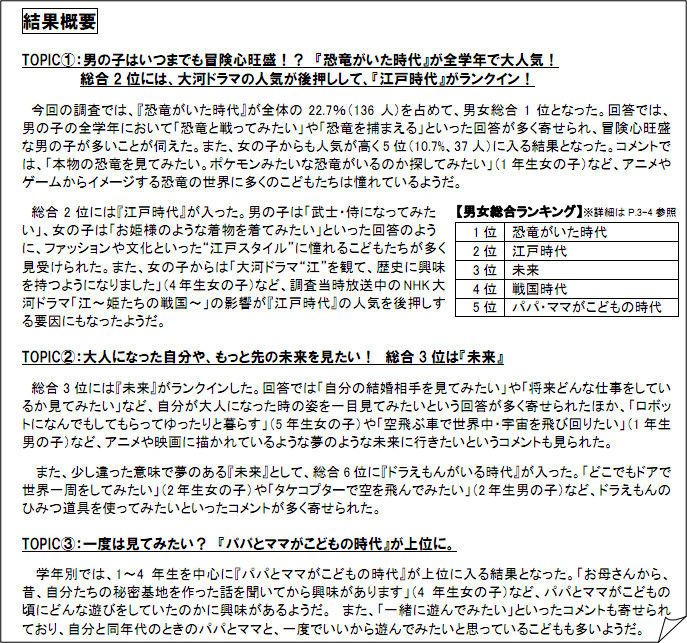 〜お子様はタイムマシンに乗れるならどの時代に行ってみたい?〜(PDF)