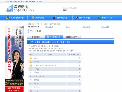 ゲーム業界 勤続年数ランキング一覧-業界動向サーチ-
