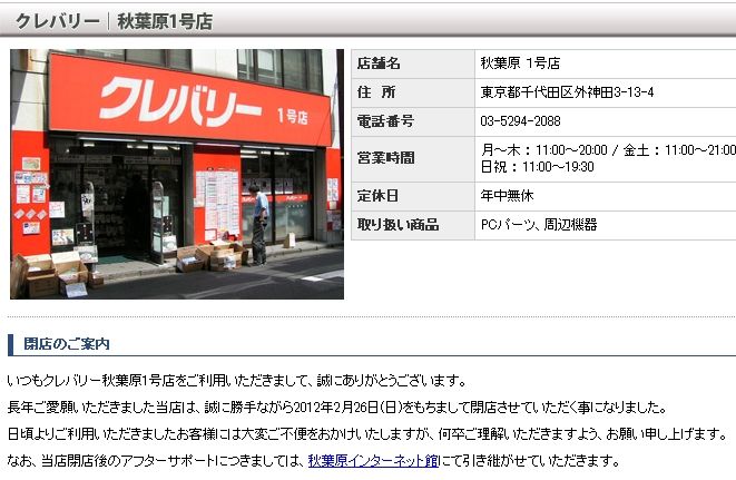 いつもクレバリー秋葉原1号店をご利用いただきまして、誠にありがとうございます。