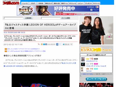 ゲーム アーカイブス”において、2012年2月22日より『私立ジャスティス学園 LEGION OF