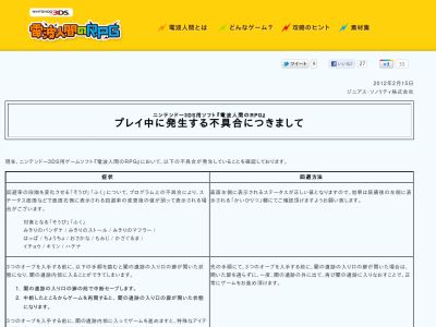 現在、ニンテンドー3DS用ゲームソフト『電波人間のRPG』において、以下の不具合が発生していることを確認しております。