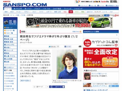 岡田将生でフジ土ドラマ枠が2年ぶり復活