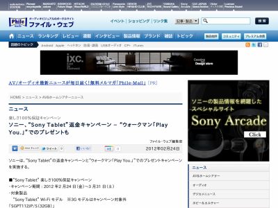 ソニー、“Sony Tablet”返金キャンペーン − “ウォークマン「Play You.」”でのプレゼントも