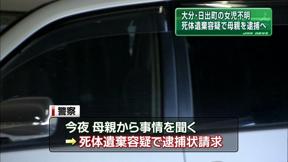 大分・日出町2歳女児行方不明で、母親の逮捕状が請求された。