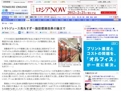 トマトジュース売れすぎ…脂肪燃焼効果の論文で