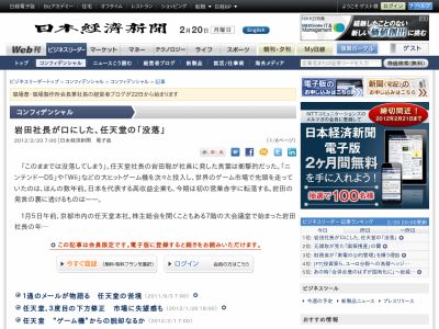 有力ソフトの不在から販売不振を招いた「3DS」の失敗を教訓に、岩田は「ソフトを途切れずに投入できる準備をするつもりだ」と話す。はやり廃りの激しいゲームの世界では、発売のタイミングを逸することがゲーム機本体の死活問題。「3DS」の成功には、マリオやポケットモンスターといった大人気ソフトをしのぎ、新たな有力ソフトがどうしても必要になる。