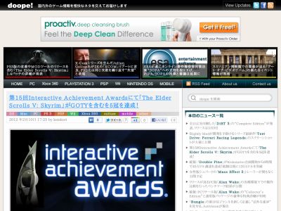 第15回Interactive Achievement Awardsにて「The Elder Scrolls V: Skyrim」がGOTYを含むを5冠を達成!