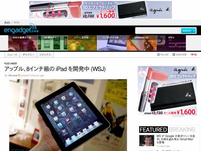 ○アップル、8インチ級の iPad を開発中 (WSJ)
