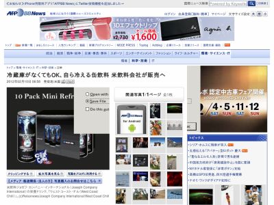 冷蔵庫がなくてもOK、自ら冷える缶飲料 米飲料会社が販売へ