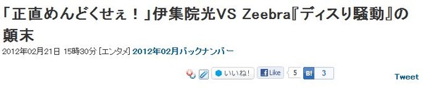 2月20日深夜、ヒップホップアーティストのZeebraが自身のツイッターでタレント伊集院光へ