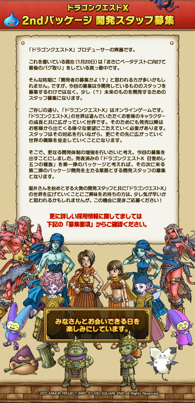 ドラゴンクエストX 2ndパッケージ 開発スタッフ募集