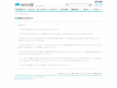 このたび、2009年5月1日にサービスを開始いたしました『Wiiの間』は、本年4月30日をもってサービスを終了いたします。
