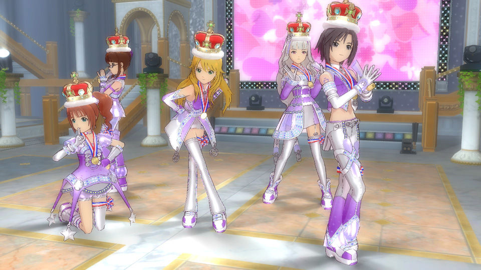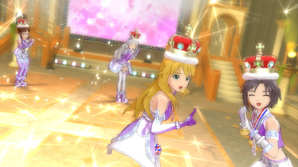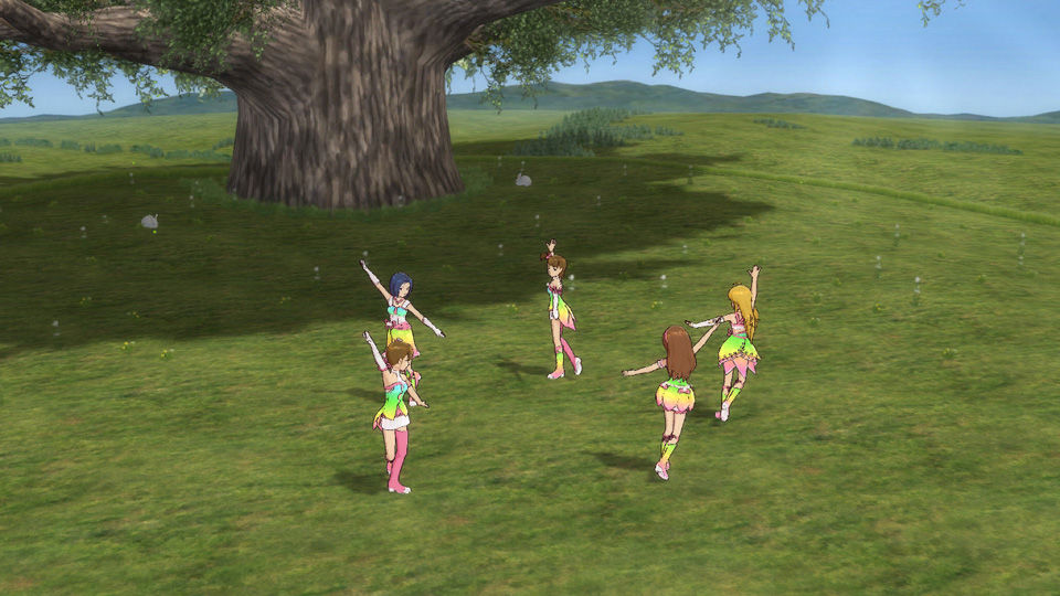 新楽曲として,アニメ第25話「みんなと、いっしょに!」のクライマックスで使われた「私たちはずっと…でしょう?」が登場する。一つの種を地面に植えるとそれが芽吹き,すぐに大木に成長し,その木の枝で765プロのアイドル達が歌い,彼女達の周囲を無数の蛍が飛び交うという幻想的なシーンが印象的な楽曲だ。第1話〜第24話までの間,あまり見られなかったいかにもアニメならではのファンタジー演出が,ここ一番で効果的に使われた場面だったと思う。