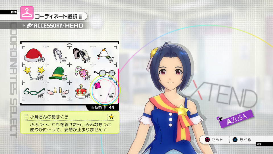 トロとは,ゲーム「どこでもいっしょ」シリーズに登場するネコ系のキャラクターで,「本名は井上トロ」「マグロの中トロが好き」「トロ・ステーションでただ働きしている」など,調べてみたところ,さまざまな属性を持っていることが分かった。そんなトロが,なんと無料アクセサリーとなって登場したというわけだ。“どこでもいっしょ”の名前どおり,アイドル達の腕にぎゅーっとしがみついて,激しいダンスでもけっして離れないという――なんとなく,生まれ変わったらトロになるのもいいんじゃないかという気分になってきたが,ぎゅーっとトロはダンスイメージがアップする。