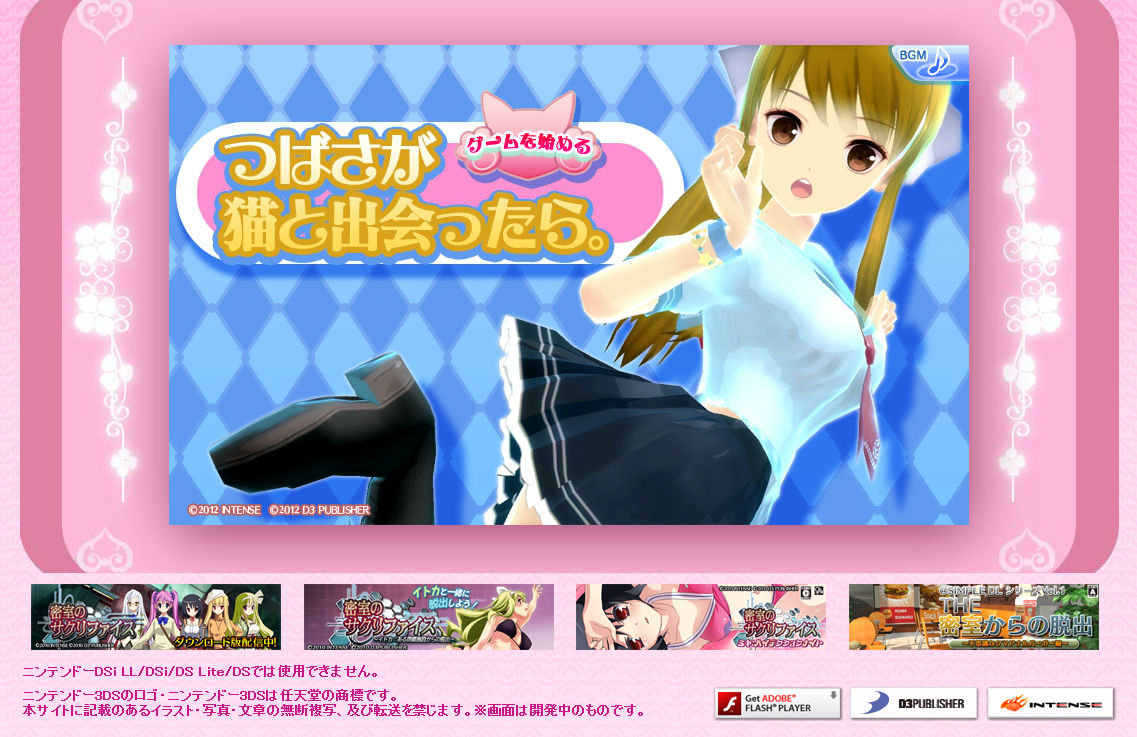 ディースリー・パブリッシャーは本日(2012年4月20日),ニンテンドー3DS用ソフト「女の子と密室にいたら○○しちゃうかもしれない。」の公式サイトを更新し,「つばさが猫と出会ったら。」という,ブラウザ上で遊べるアドベンチャーゲームを公開した。このゲームの内容は,猫となったプレイヤーが,閉じ込められた女の子の脱出を手助けするというものになっている。ぜひ遊んでみよう。