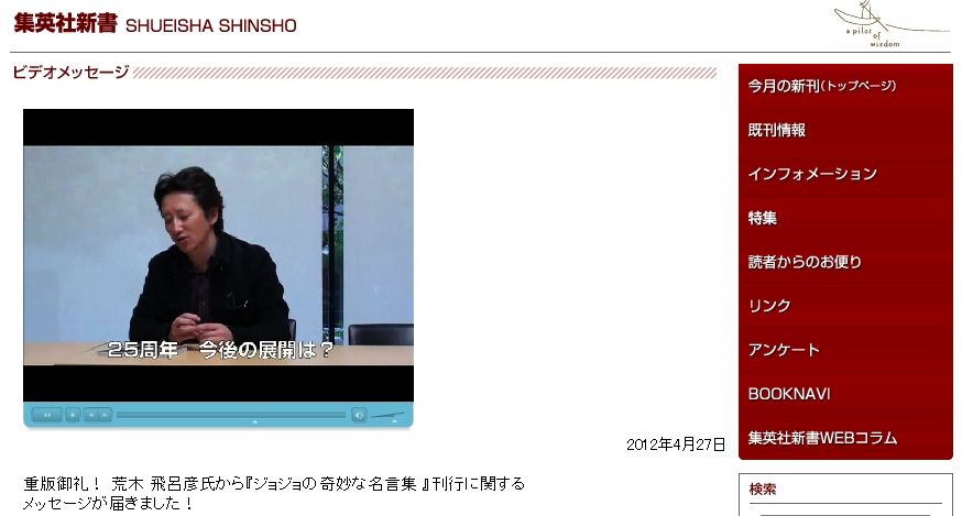 荒木飛呂彦氏からビデオメッセージ | 集英社新書