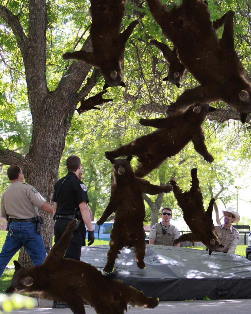 が麻酔銃で眠らせ、落ちるところにマットを敷いて〝ナイスキャッチ〟。