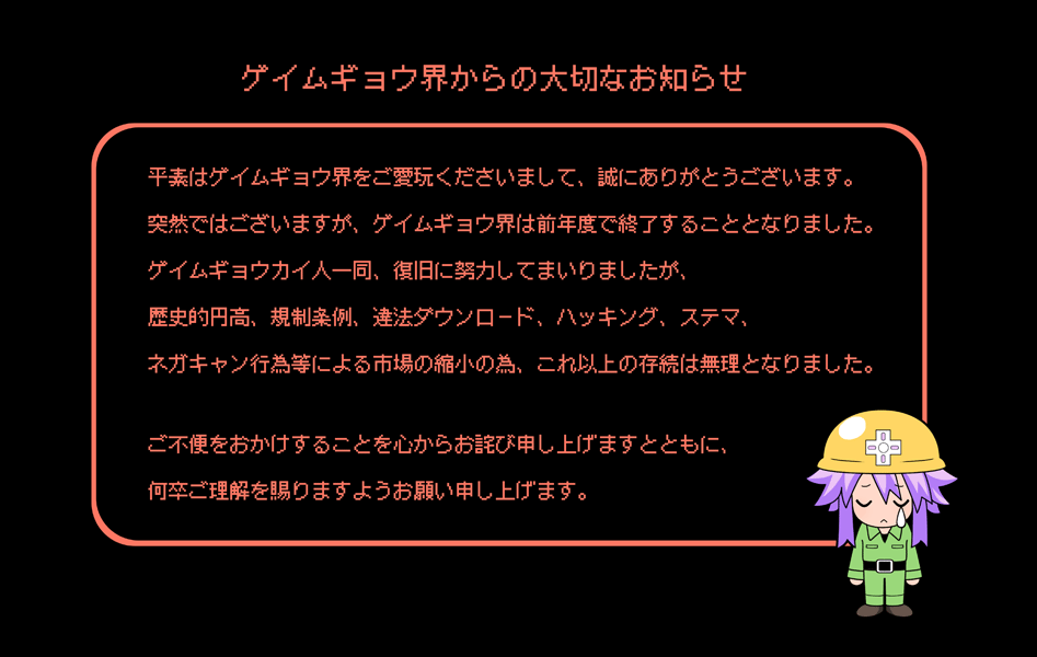 突然ではございますが、ゲイムギョウ界は前年度で終了することとなりました。