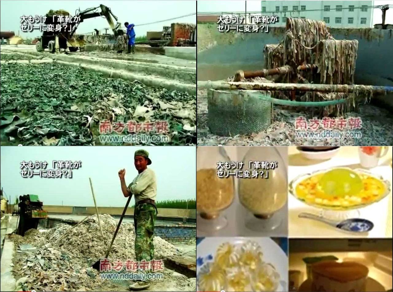【中国】大もうけ「革靴・革ジャンがゼリーに大変身!」廃棄皮革からゼラチン抽出の暴露番組が放送中止