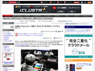 Apple と Apple 製品の製造を請け負う Faxconn が、メディアによる工場内の取材を許可することはこれまでほとんどなかった。だが、両社は米国の非営利団体の放送局 Amrican Public Media(APM)の Rob Schmitz 氏に対し iPad 工場内部の撮影を許可。APR は取材時に撮影された映像を、Web サイトで公開した。