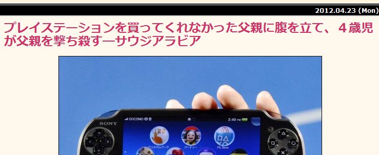 プレイステーションを買ってくれなかった父親に腹を立てた4歳児が、父親を撃ち殺すという事件が