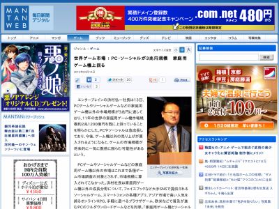エンターブレインの浜村弘一社長は13日、PCゲームやソーシャルゲームなどの家庭用ゲーム機以外の市場規模が3兆円に達しており、11年の世界の家庭用ゲーム機市場規模約2兆1200億円を既に上回っていることを明らかにした。PCやソーシャルは急成長しており、今後、ゲーム機以外の売り上げが算入されるようになると、ゲームの市場規模が将来的に一気に数倍に膨らむ可能性があるという。