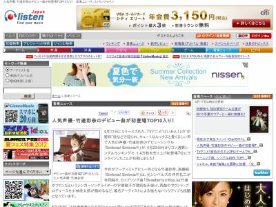 4月11日にリリースされた、TVアニメ「けいおん!」の“中野梓”役などで知られ、キュートなルックスと愛くるしい声で人気の声優・竹達彩奈のデビューシングル「Sinfonia! Sinfonia!!!」が、4月23日付オリコン週間シングルランキングで、1.4万枚を売り上げ初登場7位にランクインしたことが判明しました!