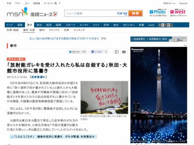 【東日本大震災】「放射能ガレキを受け入れたら私は自殺する」秋田・大館市役所に落書き