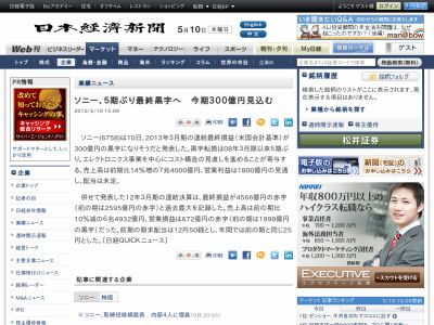 ソニー、5期ぶり最終黒字へ 今期300億円見込む
