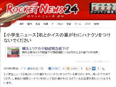 ロケットニュースが小学生ニュースを配信! 「机とかイスの裏がわにハナクソをつけないでください 」