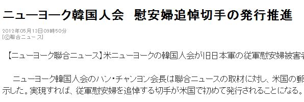 ニューヨーク韓国人会 慰安婦追悼切手の発行推進