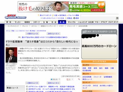 他の民放関係者は、昨年秋の日本テレビ「家政婦のミタ」が最高視聴率40%を記録したこととの関連性を指摘した。