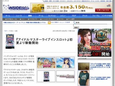 なお、5月23日にバンダイナムコゲームスとサミーは共同で、『アイドルマスターライブインスロット』の