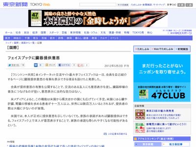 東京新聞:フェイスブックに臓器提供意思:国際(TOKYO Web)