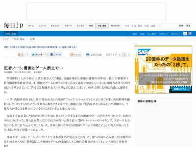記者ノート:漫画とゲーム禁止で…− 毎日jp(毎日新聞)