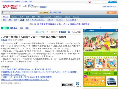 ハッカー集団の6人起訴=ソニー子会社など攻撃