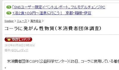 米消費者団体CSPI(公益科学センター)は5日、コーラに使用している着色剤カラメルが製造工程において発がん性物質を生じさせる、