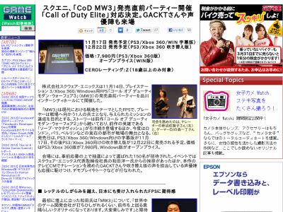 スクエニ、「CoD MW3」発売直前パーティー開催。「Call of Duty Elite」対応決定。GACKTさんや声優陣も来場