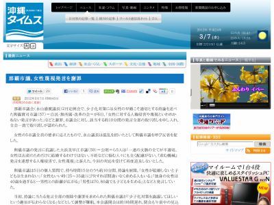 沖縄タイムス | 那覇市議、女性蔑視発言を謝罪