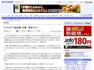 東京新聞:ダメなの?13歳投書に反響 漫画VS本:社会(TOKYO Web)